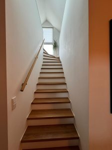 Sie verfügt über insgesamt 3 Zimmer, 2 Abstellräume, 1 Badezimmer mit bodengleicher Dusche und Badewanne sowie ein Gäste-WC, die sich über 2 Etagen verteilen.